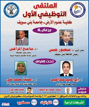 تحت رعاية معالى رئيس جامعة بنى سويف ا.د/ منصور حسن وسيادة عميد كلية علوم الارض أ.د/ على سليم ..وتحت اشراف ا.د / عصام عبد الرحمن ، د/ حاتم سعد بكرى .